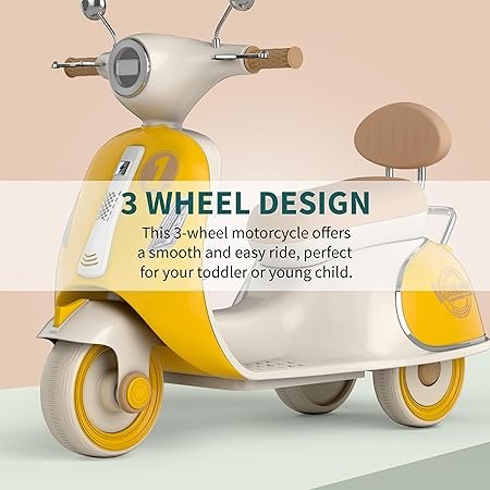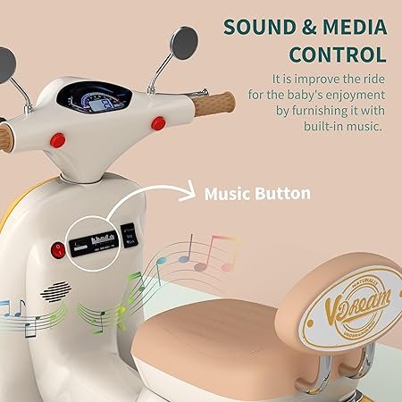 Battery Operated Vintage Scooter for Girls and Boys with Music Wide Seat